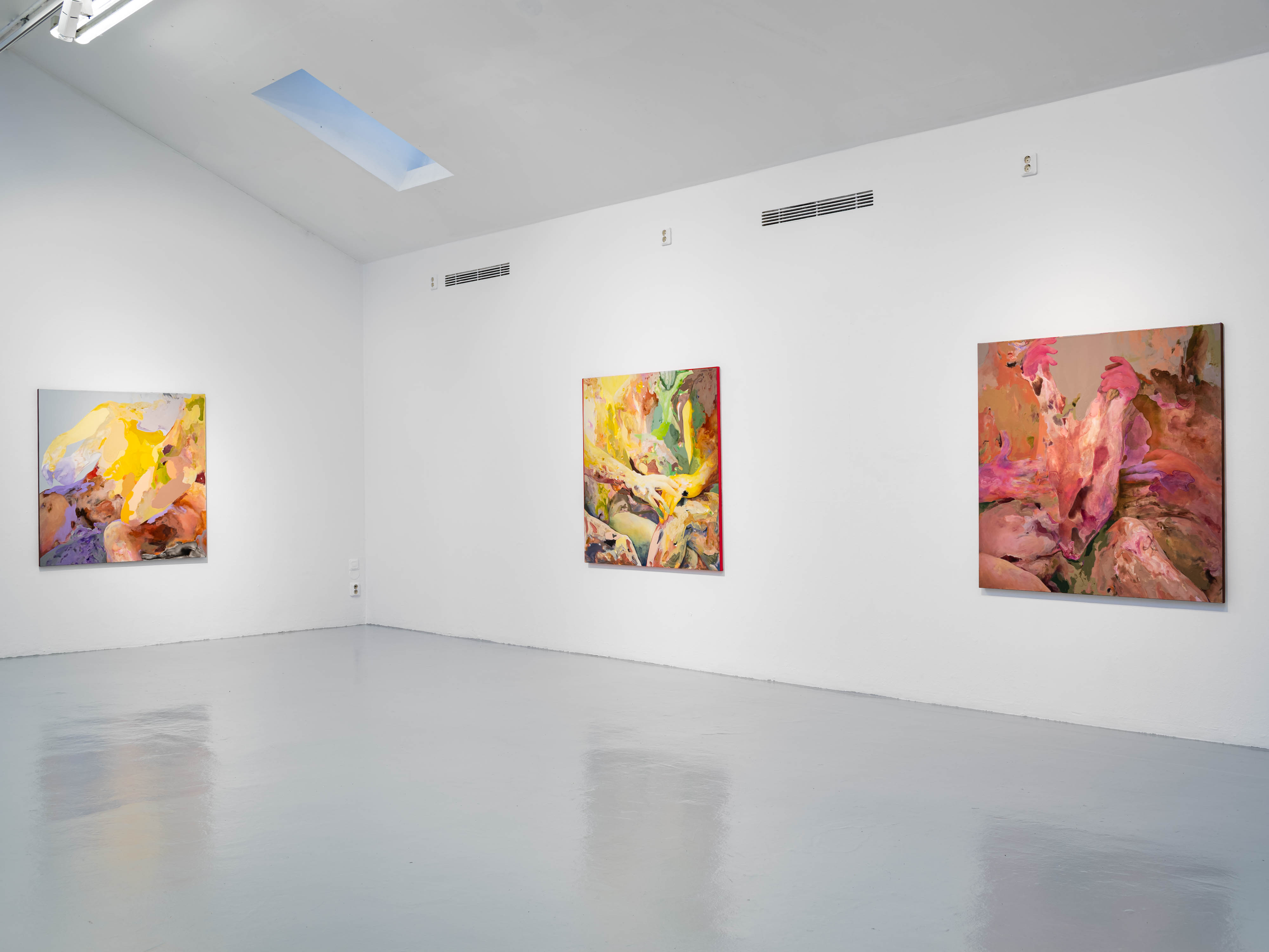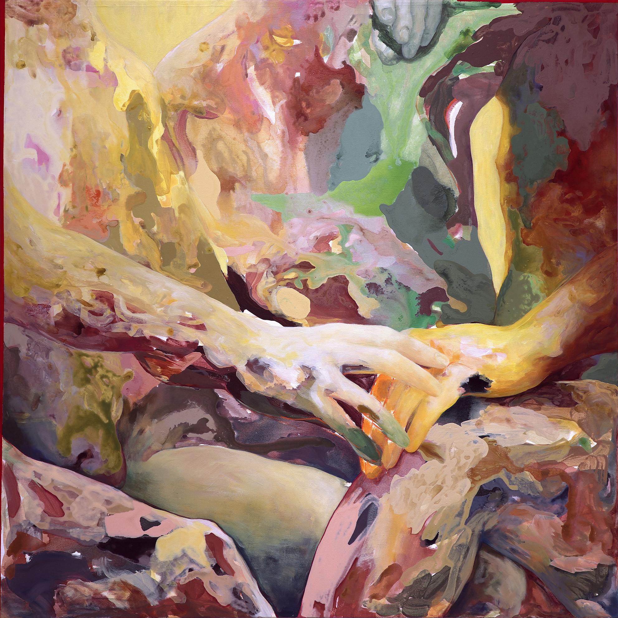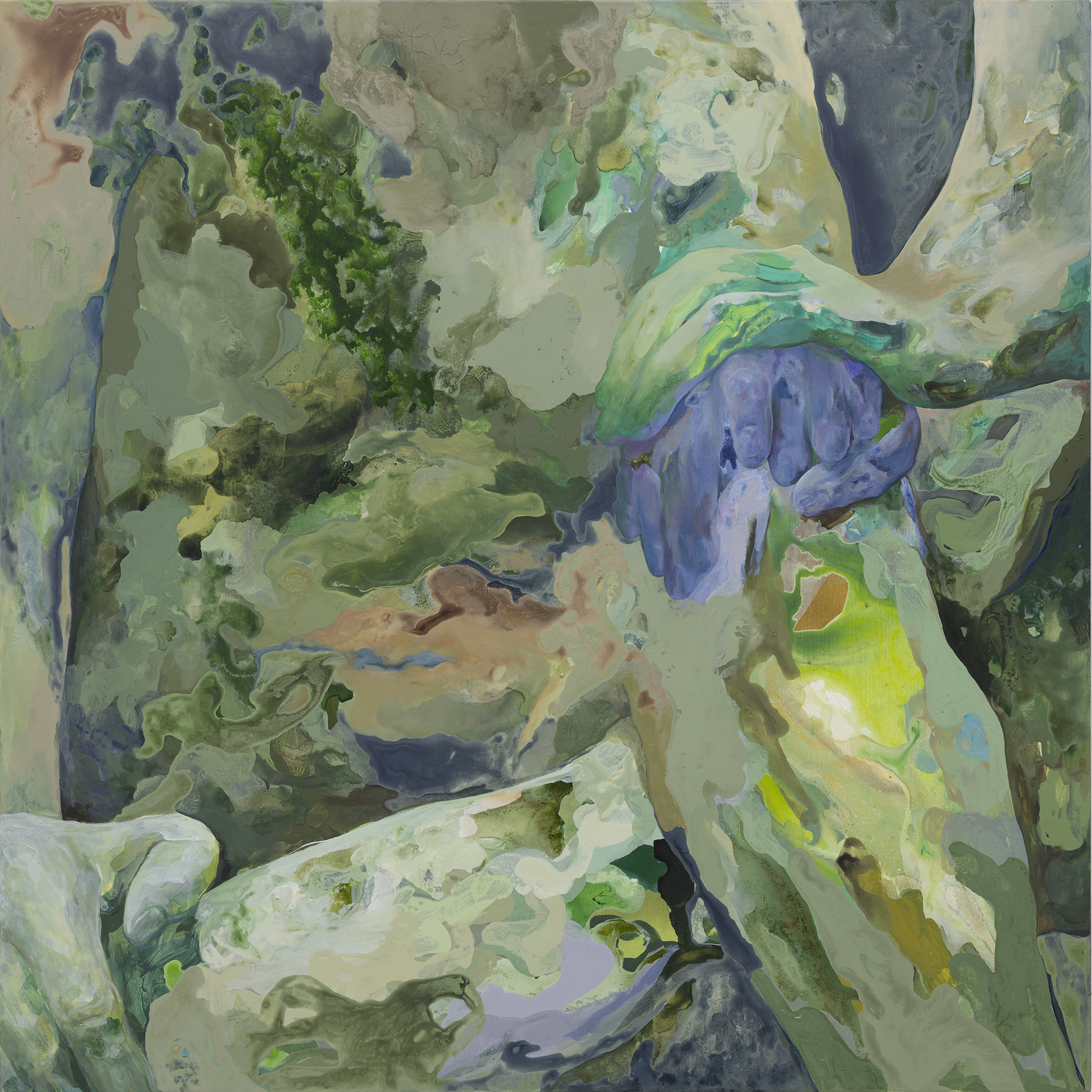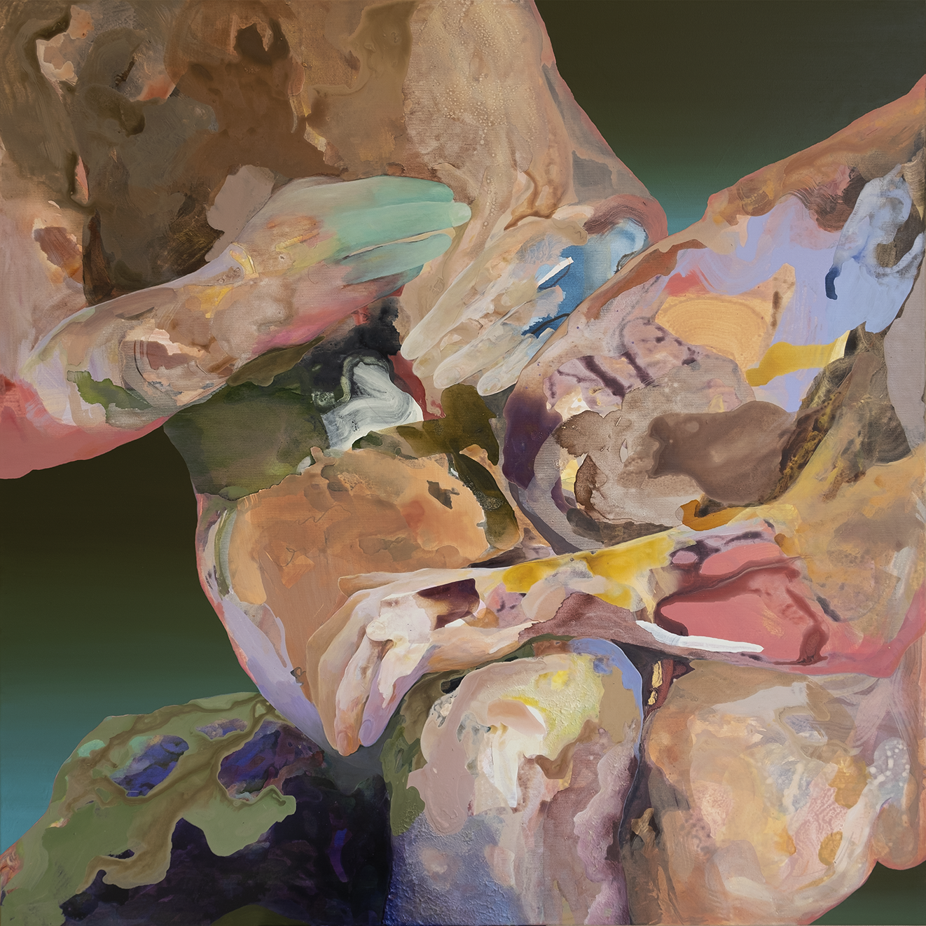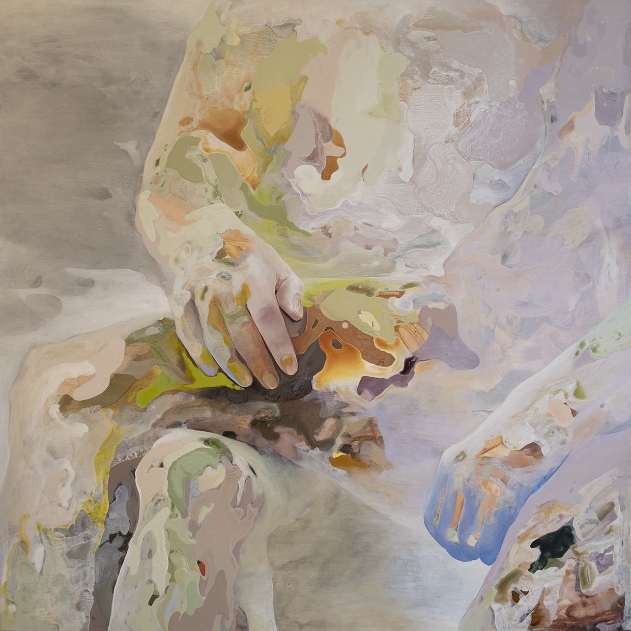 Painting series “matter that (em)bodies” explores materiality as a way to express universal closeness and forms of co-existence. Within this series, I experimented with different canvases and approaches to working with acrylic matter to develop a distinct signature style, one where opposites are expressed simultaneously: abstract and figurative, organic and synthetic, traditional and digital. 2019–2022. Sizes: 120×120 cm or 160×120 cm, acrylic on canvas.