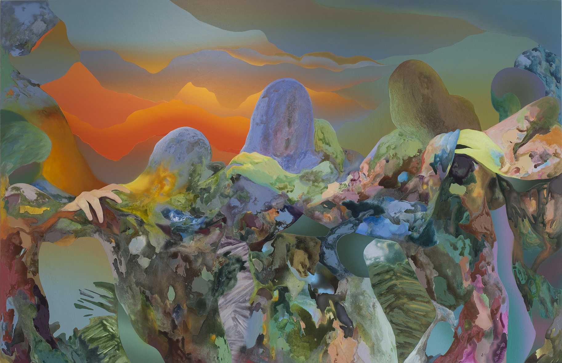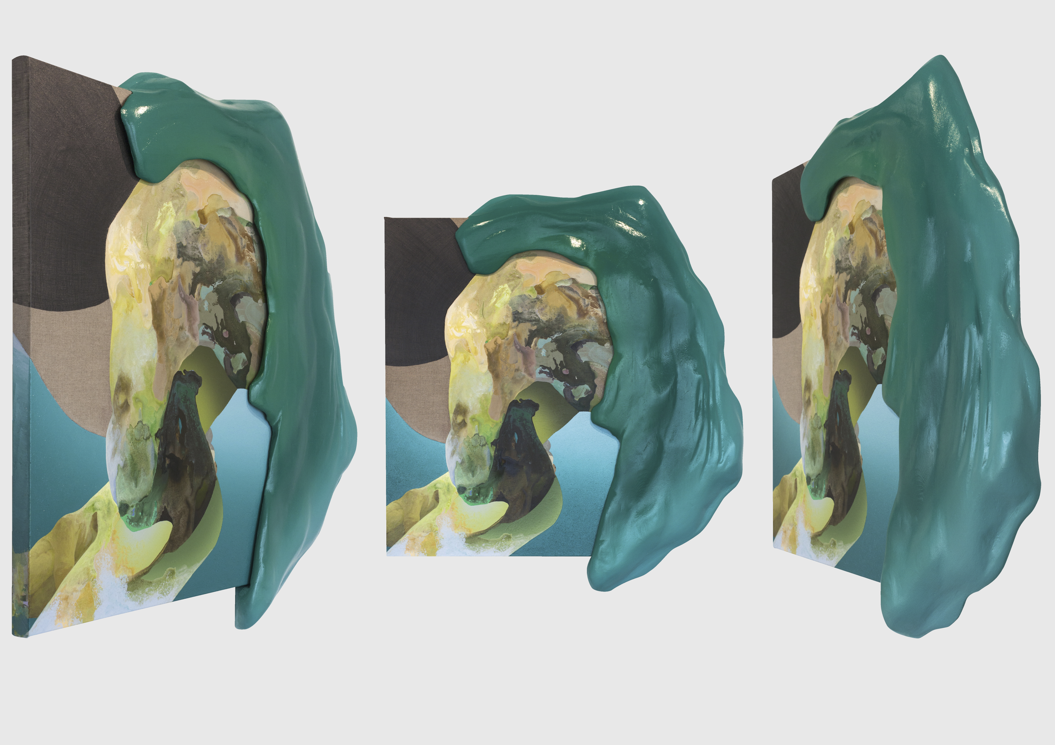 The series “to melt into your soil and sprout as a flower” explores how forms of co-existence and symbiotic growth can be expressed both metaphorically and literally through content, form, and process. Each work is “grown” over approximately six months using accumulative techniques (some areas reaching dozens of layers, others just a few), in a dialogic process of alternating between collected influences (from AI, digital tools, contributions from my child and those around me, and material constraints) and my own interventions, selectively masking, covering, or revealing previous layers to investigate what influence collaborative touch can have on the process and how it can manifest within painting.